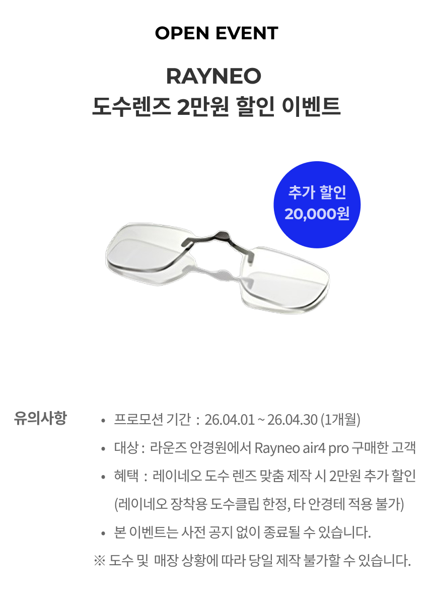 A : 가능합니다. 라운즈만의 '안경원에서 써보고 구매하기' 서비스를 통해서 전국 라운즈 가맹점에서 만나보실 수 있습니다!